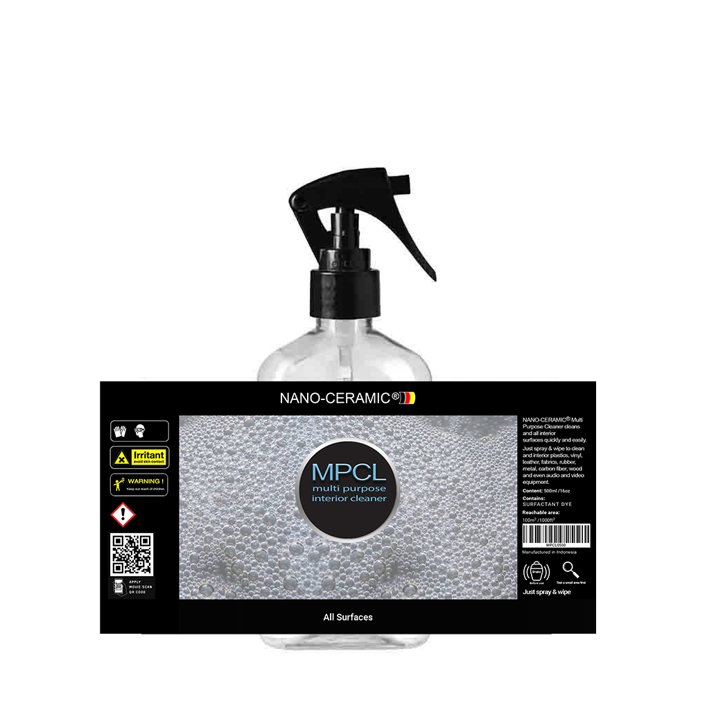 - NANO-CERAMIC’s MPCL Cleaner is a fast, all-surface interior cleaner, easy to take and use everywhere. It’s low-foaming, odor-free, and especially suitable for removing tough stains from carpets, fabrics, vinyl, plastics, and leather safely on a daily Cleaning