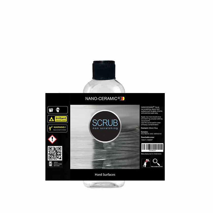 - SCRUB (Scrub Pre-treatment) is a gentle but powerful scouring and cleaning compound, suitable for scrubbing glass, chrome, stainless steel, porcelain, marble, and many other materials without scratching the surface.